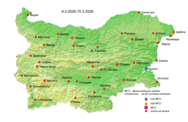 Картата на киселинността на валежите се публикува, ако е имало валежи.