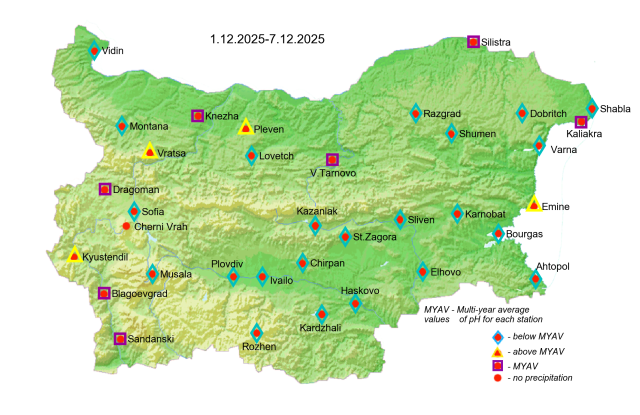 Acidity of Precipitation This map of precipitation acidity is issued every week if there was any precipitation. Language English