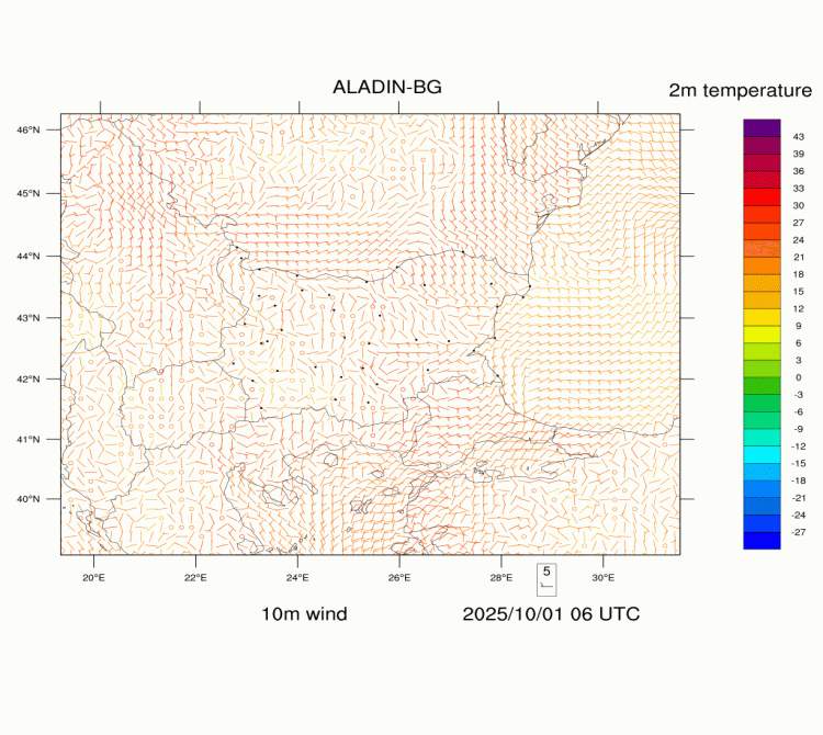 Картите са на базата на числена прогноза от модела ALADIN-BG на НИМХ.